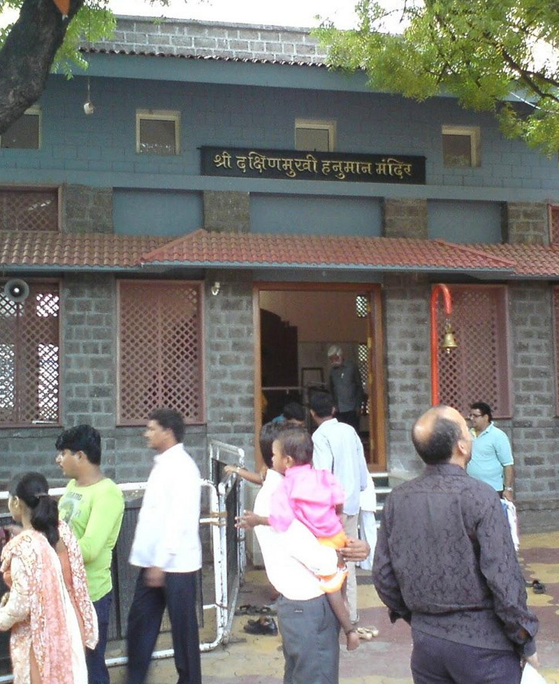 On the lane that runs between Dwarkamai and Chavadi is the Hanuman Mandir, one of the oldest temples in Shirdi. marked by a pair of trees enclosed by a circular railing, It is also known as the Maruti Mandir. Unusually, the temple faces south and there were two Hanuman statues here, side by side.